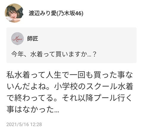 2021年5月17日299384 まとめ 乃木坂46まとめの「ま」 【乃木坂46】渡辺みり愛、最後に着た水着はスクール水着・・・ 0 0 0 480: 君の名は(東京都) (テテンテンテン MM17-uZaQ) 2021/05/16(日) 12:30:13.50 ID:/3snT1hbM 閃いた 続きを読む COMMENT スパム対策(このスペースには書き込まないでください) 残り文字数 0 RECOMMEND 藤嶌果歩さん、最新グラビアで推定Eカップが・・・ - 乃木通 乃木坂46櫻坂46日向坂46 1時間前 コメント数:0 最新の池田瑛紗さん、ナマの太ももを晒してしまう・・・ - 乃木通 乃木坂46櫻坂46日向坂46 23時間前 コメント数:0 『大越ひなの』と『谷口愛季』の意外な共通点・・・ - 乃木通 乃木坂46櫻坂46日向坂46 5日前 コメント数:0 与田祐希の新ドラマ、与田ちゃんのFカップが揺れまくってしまう・・・ - 乃木通 乃木坂46櫻坂46日向坂46 7時間前 コメント数:0 川﨑桜の太ももの付け根が見えた瞬間、セクシーすぎる・・・ - 乃木通 乃木坂46櫻坂46日向坂46 6時間前 コメント数:0 このポニーテールの瀬戸口心月さん、ガチで美しすぎるwwwwww - 乃木通 乃木坂46櫻坂46日向坂46 6日前 コメント数:0