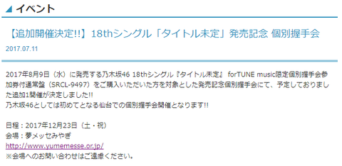 【乃木坂46】乃木坂初となる"仙台"での『個別握手会』が追加!12月23日開催決定!東北民良かったな!