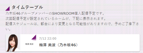 【乃木坂46】梅澤美波 明日7月12日22:00~『SHOWROOM』配信予定に登場!