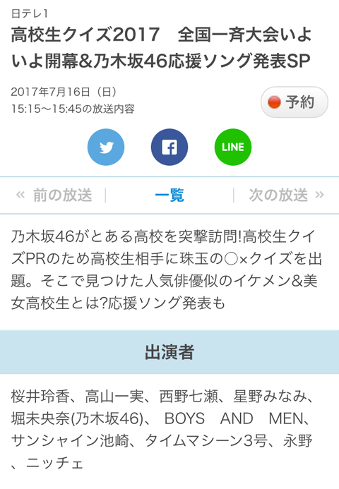 【乃木坂46】7月16日放送『高校生クイズ2017SP』にて乃木坂46応援ソングを発表!