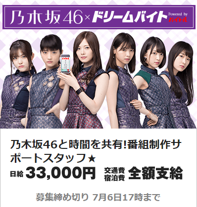 【乃木坂46】乃木坂46が出演する『番組制作サポートスタッフ』を募集!日給3.3万円&交通費支給!