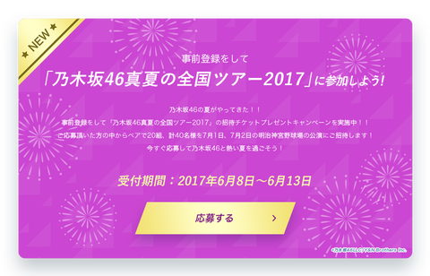 【乃木坂46】『真夏の全国ツアー2017』神宮公演プレゼントキャンペーンを『always with you』サイトにて開催!