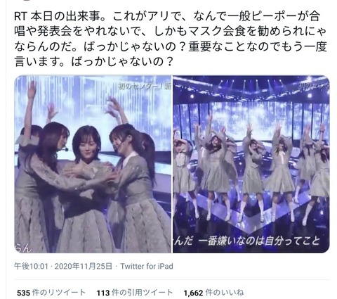 乃木通☆世界最速!乃木坂46欅坂46日向坂46速報まとめ 全16952件取得 3/566 前の30件 次の30件 2020年12月8日278494 まとめ 乃木通☆世界最速!乃木坂46欅坂46日向坂46速報まとめ 「僕は僕を好きになる」の振付がアリがOKで、一般人は合唱や発表会をやれないのはナゼ?←バズってしまう 0 0 0 2020年12月8日278485 まとめ 乃木通☆世界最速!乃木坂46欅坂46日向坂46速報まとめ 【画像あり】マスク姿のれなちが軍服っぽくてかわいい 0 0 0 2020年12月8日278479 まとめ 乃木通☆世界最速!乃木坂46欅坂46日向坂46速報まとめ メンバーの出てる雑誌ってみんなどうしてんの? そろそろ嫁さんに捨てられそうで怖い 0 0 0 2020年12月8日278477 まとめ 乃木通☆世界最速!乃木坂46欅坂46日向坂46速報まとめ でんちゃんとかいう喋りだけで70点くらい損してる勿体ない超絶美人 0 0 0 2020年12月7日278370 2020年12月8日278471 まとめ 乃木通☆世界最速!乃木坂46欅坂46日向坂46速報まとめ 今年、小坂菜緒を一番綺麗に撮ったのはCMNOWかブロディだった 0 0 0 2020年12月8日278469 まとめ 乃木通☆世界最速!乃木坂46欅坂46日向坂46速報まとめ 平手と生駒いったいどこで差がついたのか 0 0 0 2020年12月8日278453 まとめ 乃木通☆世界最速!乃木坂46欅坂46日向坂46速報まとめ 4期をアンダーに落とせって言ってる人居るけどアンダーに行く意味って何? 0 0 0 2020年12月8日278447 まとめ 乃木通☆世界最速!乃木坂46欅坂46日向坂46速報まとめ 与田が乃木坂のレギュラー番組に全く出ないのはなぜ? 0 0 0 2020年12月8日278443 まとめ 乃木通☆世界最速!乃木坂46欅坂46日向坂46速報まとめ 【快挙】NiziU、握手無しでデビューシングル歴代2位の初週31.2万枚! 0 0 0 2020年12月8日278438 まとめ 乃木通☆世界最速!乃木坂46欅坂46日向坂46速報まとめ 【NOGIBINGO!Blu-ray BOX】OGたちの過去の思い出たちがスキッツに惨敗しそう 0 0 0 2020年12月8日278434 まとめ 乃木通☆世界最速!乃木坂46欅坂46日向坂46速報まとめ ミーグリ梅山久保全落ちしたわ。倍率個握とそんなかわらん? 0 0 0 2020年12月8日278430 まとめ 乃木通☆世界最速!乃木坂46欅坂46日向坂46速報まとめ 【画像】街中ですれ違ってもゆったんと気づけないかもしれない 0 0 0 2020年12月8日278422 まとめ 乃木通☆世界最速!乃木坂46欅坂46日向坂46速報まとめ 【画像】これはみんな大好きニットπウメマヨ 0 0 0 2020年12月7日278370 2020年12月8日278416 まとめ 乃木通☆世界最速!乃木坂46欅坂46日向坂46速報まとめ 早川聖来、始まる 0 0 0 2020年12月8日278413 まとめ 乃木通☆世界最速!乃木坂46欅坂46日向坂46速報まとめ 早川聖来(26thの4期曲単独センター、乃木中とスキッツの出演回数上位、ヒッスタレギュラー) ←この子が運営から最近激押しされてる理由 0 0 0 2020年12月8日278409 まとめ 乃木通☆世界最速!乃木坂46欅坂46日向坂46速報まとめ 昨日のがくたびの与田ちゃんが酷すぎた 0 0 0 2020年12月8日278405 まとめ 乃木通☆世界最速!乃木坂46欅坂46日向坂46速報まとめ アンダラ初日は絶対メンバーも客もおかしなテンションになってると思うから現地で観たいなぁ 0 0 0 2020年12月8日278403 まとめ 乃木通☆世界最速!乃木坂46欅坂46日向坂46速報まとめ 【売り出し期間終了?】声カワイイ選手権で梅澤さんが1回も呼ばれなかった件について 0 0 0 2020年12月8日278399 まとめ 乃木通☆世界最速!乃木坂46欅坂46日向坂46速報まとめ 【画像】来年またセラミュか? タキシード仮面 意味深ツイート 0 0 0 2020年12月8日278397 まとめ 乃木通☆世界最速!乃木坂46欅坂46日向坂46速報まとめ 【意味深】星野みなみ「ほんとに声すごい出ちゃうんです」 0 0 0 2020年12月8日278395 まとめ 乃木通☆世界最速!乃木坂46欅坂46日向坂46速報まとめ 【画像】梅澤にまさかの流れ弾www 0 0 0 2020年12月8日278393 まとめ 乃木通☆世界最速!乃木坂46欅坂46日向坂46速報まとめ 一般人が乃木坂4期生ライブを見てみた 0 0 0 2020年12月8日278391 まとめ 乃木通☆世界最速!乃木坂46欅坂46日向坂46速報まとめ 山崎怜奈が乃木坂の指原莉乃になりそうな件 0 0 0 2020年12月8日278390 まとめ 乃木通☆世界最速!乃木坂46欅坂46日向坂46速報まとめ バレッタと図書室の君への主人公は同じ娘に恋をしている説 0 0 0 2020年12月8日278389 まとめ 乃木通☆世界最速!乃木坂46欅坂46日向坂46速報まとめ コロナ渦なんだから金取らずに無料でなんかやったほうが新規を獲得できると思わない? 0 0 0 2020年12月8日278386 まとめ 乃木通☆世界最速!乃木坂46欅坂46日向坂46速報まとめ 握手会で、キモオタにも優しいメンバー・優しくないメンバー 0 0 0 2020年12月8日278380 まとめ 乃木通☆世界最速!乃木坂46欅坂46日向坂46速報まとめ 4期生ライブ観て思ったがやっぱ2期って不遇なんじゃないか? 0 0 0 2020年12月8日278376 まとめ 乃木通☆世界最速!乃木坂46欅坂46日向坂46速報まとめ “乃木坂らしさ”より“SMAP感”が重視される時代 0 0 0 2020年12月8日278374 まとめ 乃木通☆世界最速!乃木坂46欅坂46日向坂46速報まとめ 二期生曲もセンター色々替えるべきだったよな 0 0 0 2020年12月7日278370 まとめ 乃木通☆世界最速!乃木坂46欅坂46日向坂46速報まとめ 乃木坂「wow!yeah! hey!」←