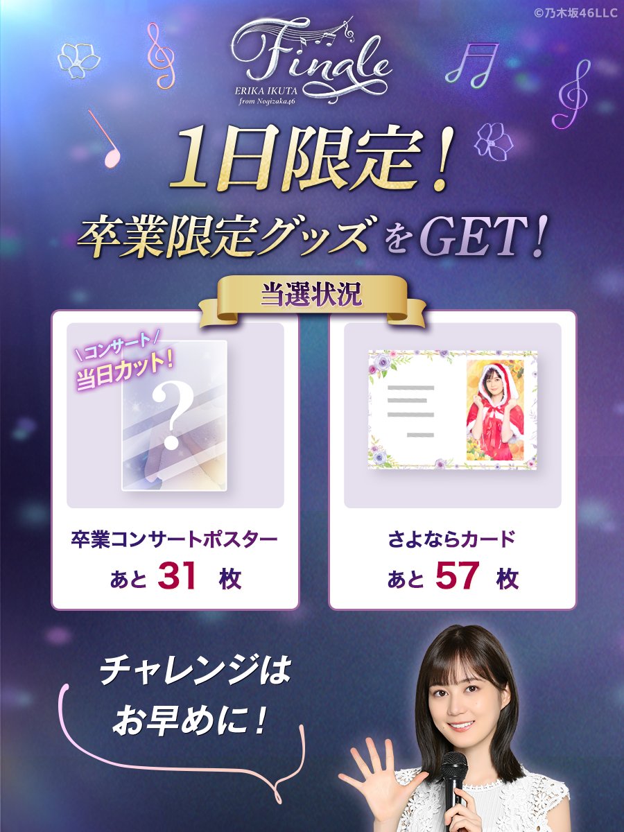 ◤ いくちゃん限定グッズが1日で 150名様に当たるチャンス ◢ いくちゃん卒業記念キャンペーン開催中✨🎼 ・サイン入り卒業コンサートポスター ・さよならカード この限定グッズが当たるのは⚡️今… https://t.co/9rGymegMe3